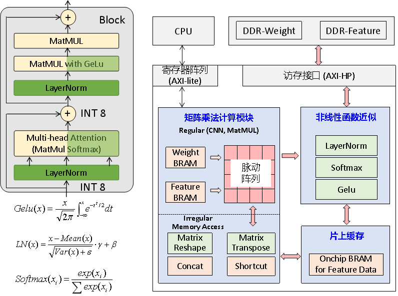 该团队针对典型的Vision Transformer网络算法提出全整形量化方案和高效的硬件设计方案。