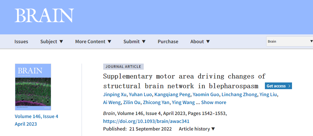 深圳先进院揭示辅助运动区在眼睑痉挛大脑结构改变中的驱动作用