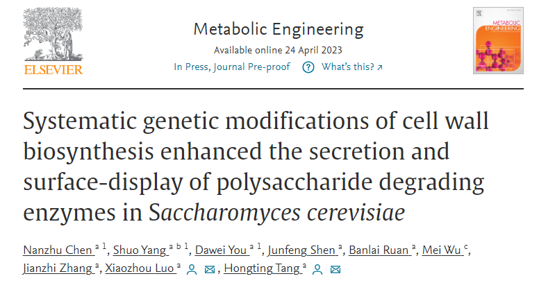 Metab. Eng.|系统改造酿酒酵母细胞壁生物合成途径增强重组酶的胞外分泌和表面展示
