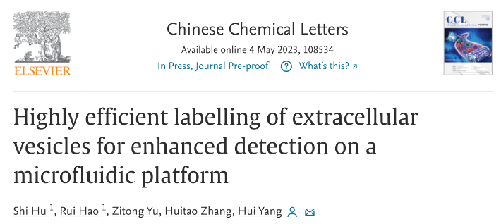 近日,中国科学院深圳先进技术研究院杨慧研究员团队在化学综合性学术期刊《中国化学快报》(Chinese Chemical Letters)上发表了最新研究成果。科研团队提出了一种基于微纳流控平台的细胞外囊泡荧光标记新策略,以实现细胞外囊泡的精确测量和荧光成像。