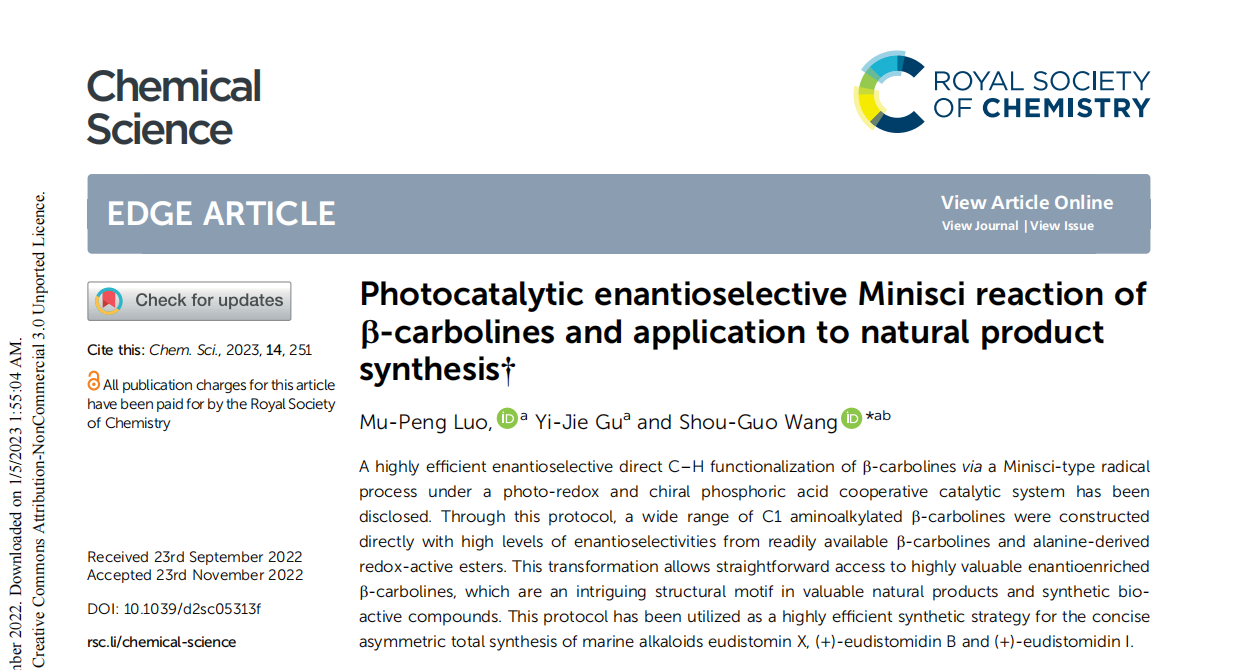 Chemical Science丨可见光催化不对称Minisci反应最新进展