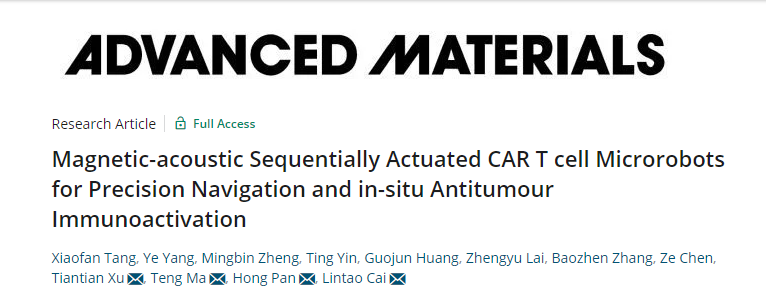Advanced Materials | “磁-声”序贯操控CAR-T细胞机器人的肿瘤精准免疫治疗策略