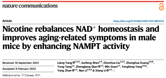 近日,中国科学院深圳先进技术研究院脑认知与脑疾病研究所李翔团队在Nature communications 杂志在线发表了题为“Nicotine rebalances NAD+ homeostasis and improves aging-related symptoms in male mice by enhancing NAMPT activity”的文章,揭示了慢性低剂量尼古丁通过激活NAD+补救...