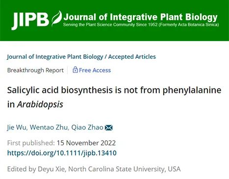 JIPB | 深圳先进院合成所赵乔课题组发现苯丙氨酸并非水杨酸合成的直接前体