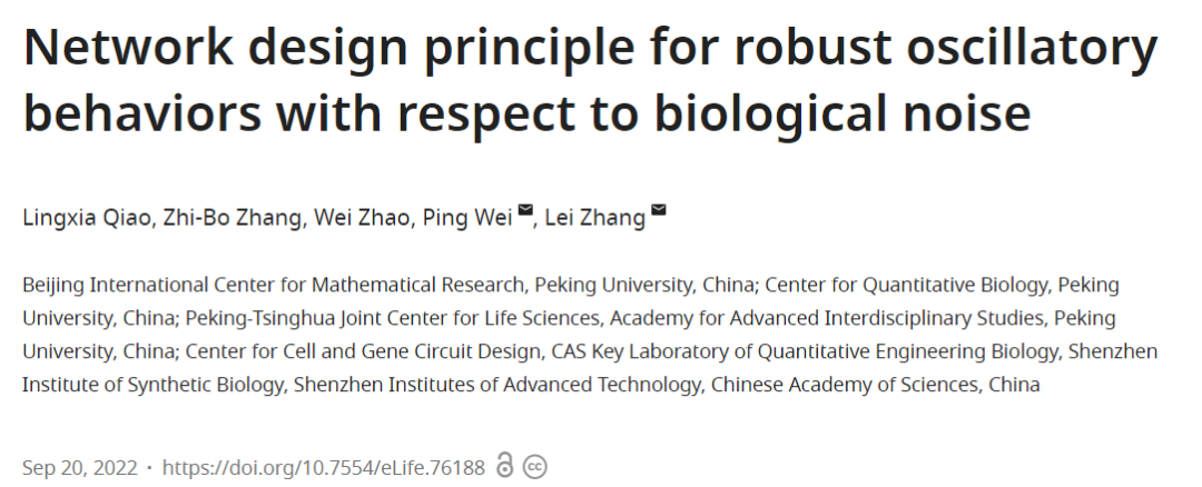 2022年9月20日,北京大学北京国际数学中心/定量生物学中心张磊课题组与中国科学院深圳先进技术研究院合成所/北京大学定量生物学中心魏平课题组在eLife合作发表了题为“Network design principle for robust oscillatory behaviors with respect to biological noise” (DOI:10.7554/eLife...