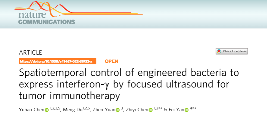 Nature Communications | 基于聚焦超声调控细菌基因表达免疫治疗肿瘤的新方法
