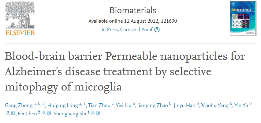 Biomaterials | 新型血脑屏障穿透性纳米材料通过激活线粒体自噬治疗阿尔兹海默症