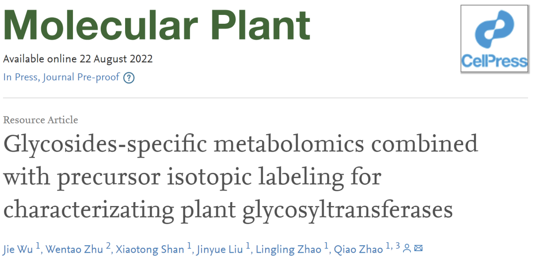 8月22日,中科院深圳先进院赵乔研究员课题组于Molecular Plant在线发表了题为“Glycosides-specific metabolomics combined with precursor isotopic labeling for characterizating plant glycosyltransferases”的研究论文,该研究建立了一种特异针对糖基化合物的代谢(glycosides-spec...