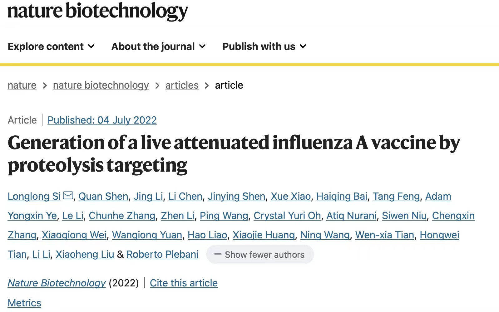 Nature Biotechnology | 调控蛋白质稳态,建立蛋白降解靶向(PROTAC)减毒疫苗新策略