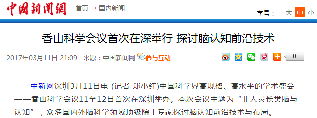 中国新闻网:香山科学会议首次在深举行 探讨脑认知前沿技术