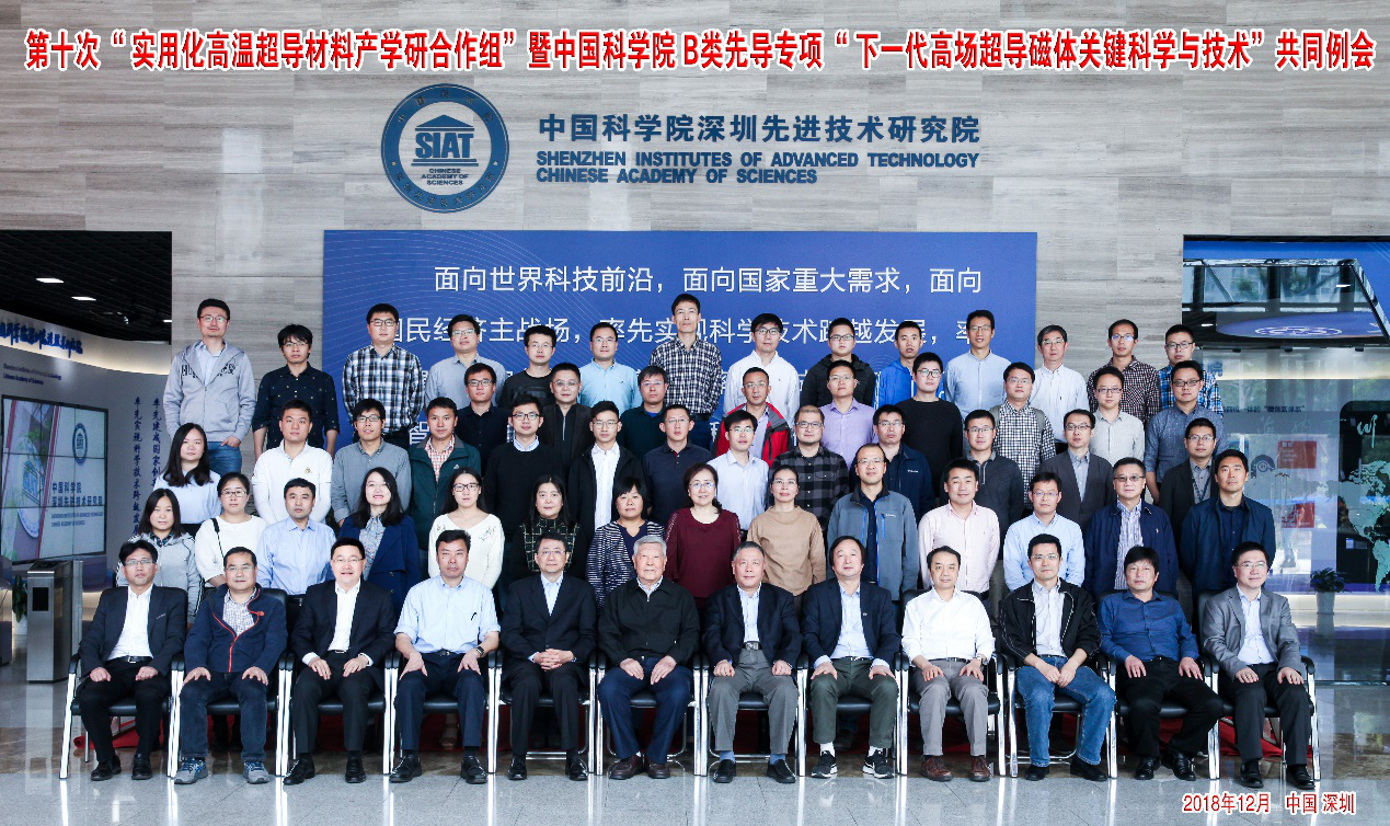 12月22-23日,“实用化高温超导材料产学研合作组”(第十次组会)暨中科院B类先导专项 “下一代高场超导磁体关键科学与技术 ”共同例会在中国科学院深圳先进技术研究院召开,共有20家单位的60余名代表参加本次会议。国家最高科学技术奖获得者赵忠贤院士、中国科学院物理研究所沈保根院士、中国科学院高能物理研究所所长王贻芳院士、中国科学院合肥物质研究院李建刚院士参加了会议。深圳市政府副秘书长吴优及深圳先进院院长樊建平到会致词。