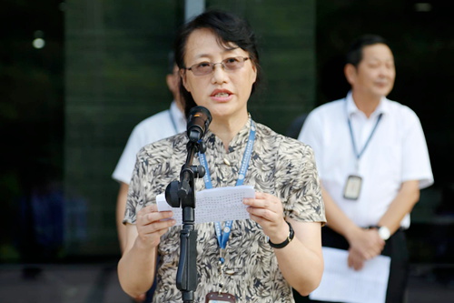 此次升旗仪式由王立平博士担任旗手,宋亮博士和李志成博士担任护旗手,党委书记、副院长白建原升国旗。伴随着庄严的国歌声,在全体师生的注目下,五星红旗冉冉升起。随后全体师生为抗日战争和解放战争中牺牲的烈士及同胞默哀,表达追思。