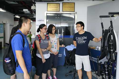 学生代表团首先参观了先进院展厅,详细了解了先进院在低成本健康、机器人、生物制药等方面的科研进展。在机器人与智能系统实验室,外骨骼机器人、下肢助行机器人和救灾机器人等吸引了大家的眼球;在食品安全及环境技术研究中心实验室,浓厚的科研氛围也让同学们大开眼界。“生物科学有哪些发展方向?”“机器人是如何运作的?”……交流会上同学们的提问充分表现了同学们对于科学的热忱。