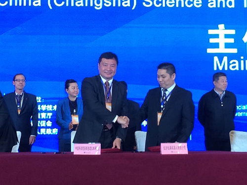 10月25日,在2016中国(长沙)科技成果转化交易会上,中国科学院深圳先进技术研究院与长沙长泰机器人有限公司举行了战略合作协议签署仪式,先进院院长助理毕亚雷与长泰机器人副总经理华文孝代表双方签约。