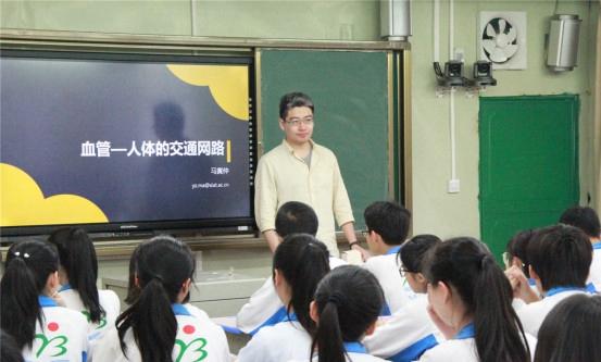 次日,交流团一行来到兴宁市沐彬中学,马寅仲博士给同学们上了一堂精彩的“血液——人体的交通网络”,课堂气氛十分活跃,深受学生喜爱。