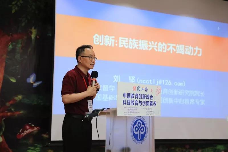国家督学、北京师范大学中国教育创新研究院院长、中国基础教育质量监测协同创新中心首席专家、副主任刘坚作了第一场主题报告——《21世纪核心素养5C研究报告》,刘坚院长表示:“文化理解与传承(Cultural Competence)、审辩思维(Critical Thinking)、创造性(Creativity)、沟通(Communication)和合作(Collaboration)这五大素养从不同角度刻画了21世纪人才必备的核心素养,它们之间既各有侧重,又相互紧密关联,形成一个整体。”刘院长还提出了自己的两点思考:“第一,创新素养教育比任何一门课程都重要;第二,创新素养的培养需要在每一门课程中落实到日常的常规教育教学活动中。它不应列入国家课程之外,更不应视之为少数人的专利,应该在每天的教育教学中体现创新素养教育。”