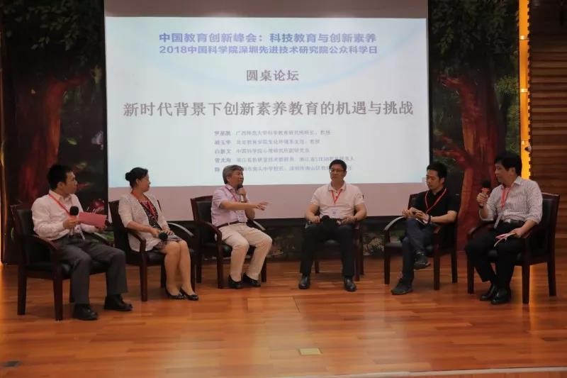 2018年5月18日,“中国教育创新峰会:科技教育与创新素养”专题研讨会暨“中国科学院深圳先进技术研究院2018公众科学日”活动在中国科学院深圳先进技术研究院实验学校(以下简称“中科先进院实验学校”)举行。此次的参会人员分别来自北京、上海、江苏、广东、湖南、内蒙古等17个省市、自治区、直辖市以及香港、澳门特别行政区,共300余人。大家齐聚一堂,共同研讨“科技教育与创新素养”的主题。共有来自全国各地15位嘉宾分享,以及 “粤港澳大湾区青少年创新素质培养”和“新时代背景下创新素养的机遇与挑战”两个圆桌论坛。会议由北京师范大学中国教育创新研究院副院长郑琰主持。