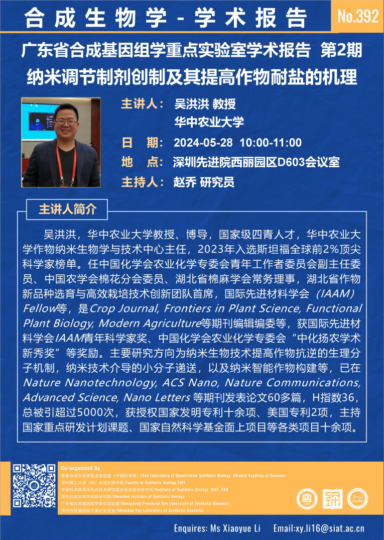 【2024年5月28日 合成所/合成生物学院】纳米调节制剂创制及其提高作物耐盐的机理