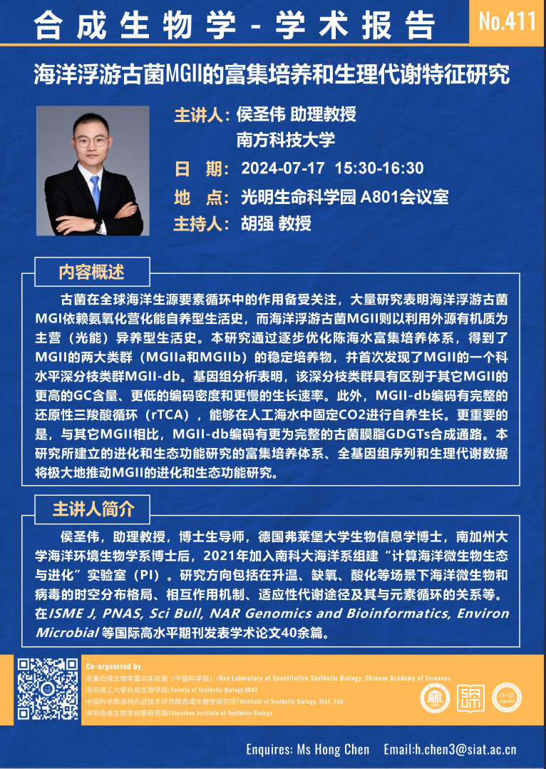 合成所/合成生物学院第409期学术讲座将于 7月17日(星期三)15:30-16:30 在 光明生命科学园 A801会议室 举行。
