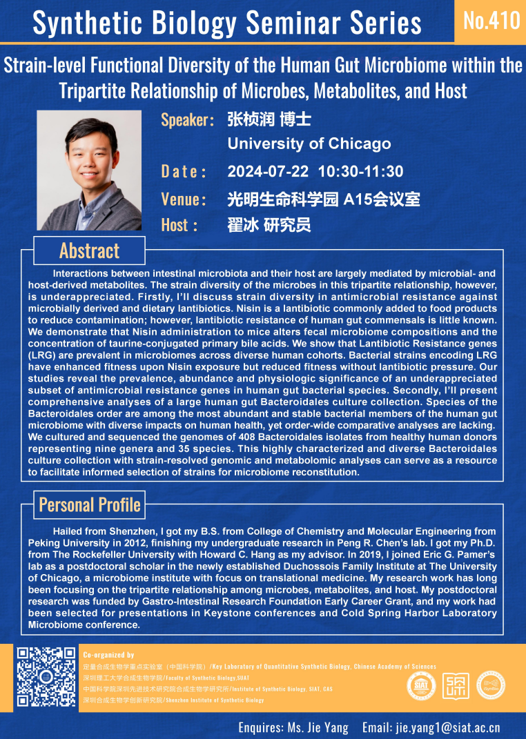 【2024年7月22日 合成所/合成生物学院】Strain-level Functional Diversity of the Human Gut Microbiome within the Tripartite Relationship of Microbes, Metabolites, and Host