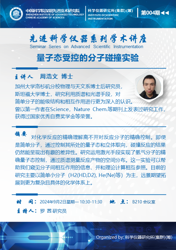 【2024年9月2日 科学仪器研究所(集群)】量子态受控的分子碰撞实验