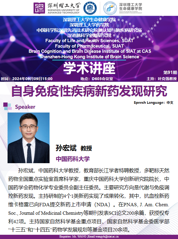 【2024年9月9日 生命健康学院】自身免疫性疾病新药发现研究
