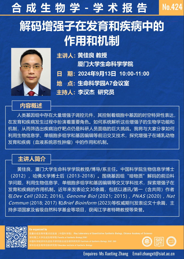 【2024年9月13日 合成所/合成生物学院】解码增强子在发育和疾病中的作用和机制