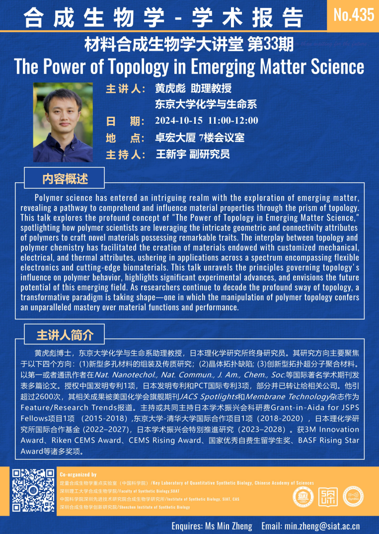 【2024年10月15日 合成所/合成生物学院】The Power of Topology in Emerging Matter Science