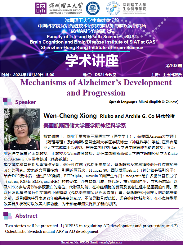 【2024年10月29日 生命健康学院】Mechanisms of Alzheimer's Development and Progression