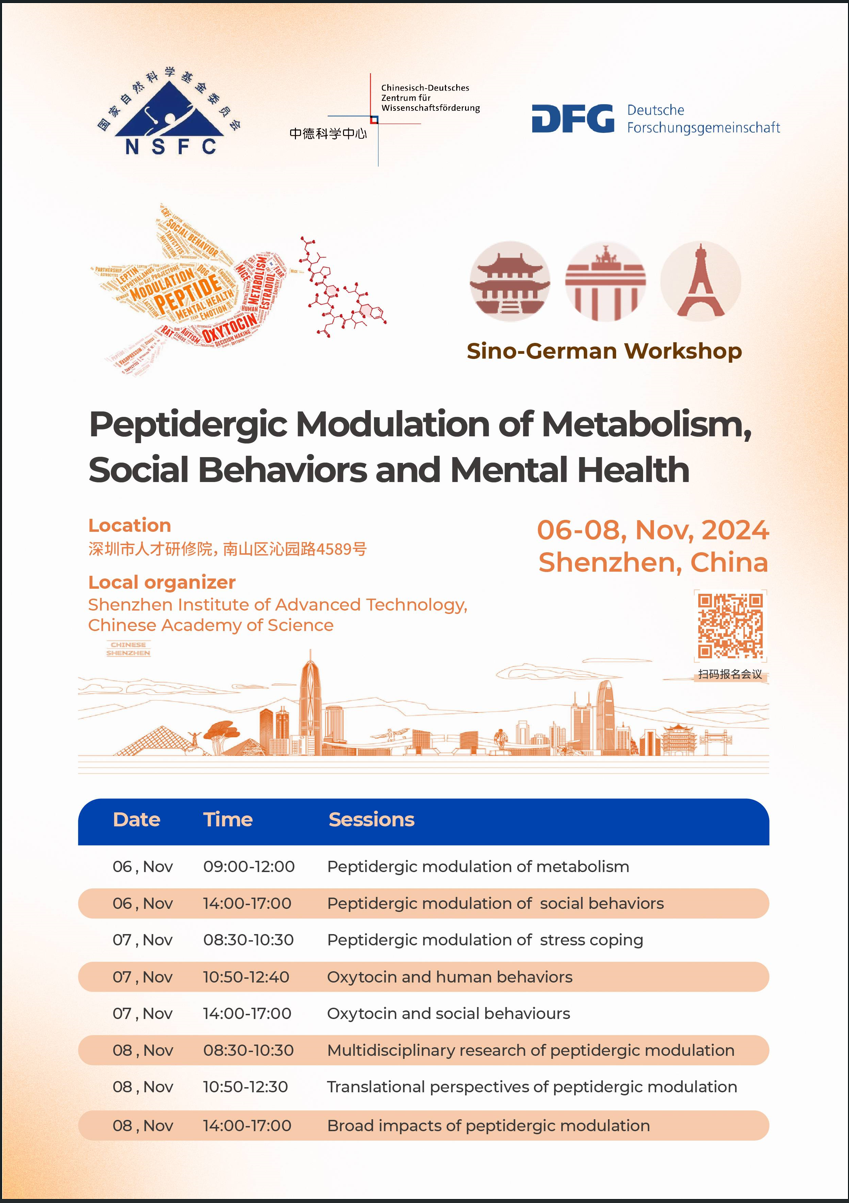 2024年中德“多肽调控的基础与医学研究前沿交叉研讨会”将于11月6-8日 在 深圳市人才研修院(智汇中心二楼-多功能厅)召开。