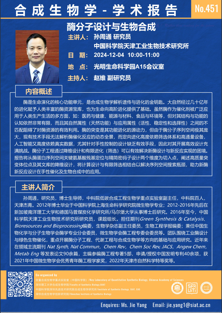 【2024年12月4日 合成所/合成生物学院】酶分子设计与生物合成
