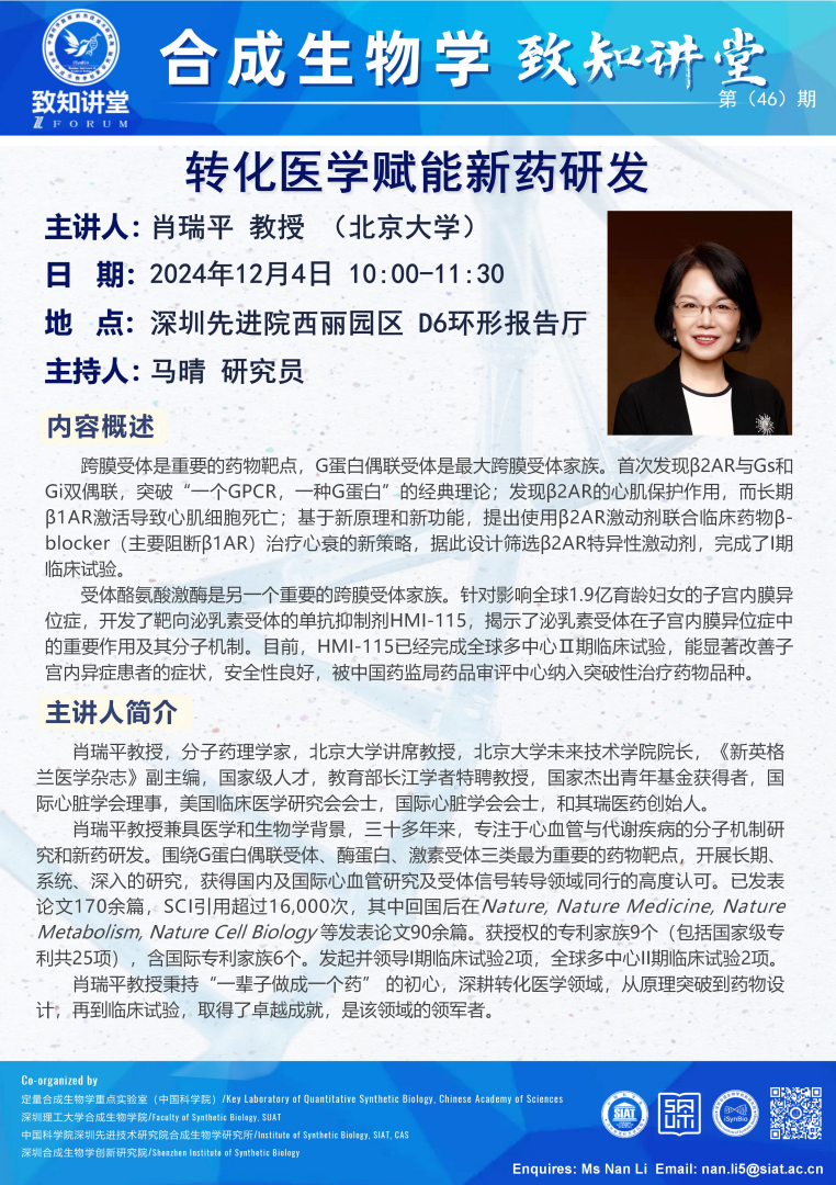 【2024年12月4日 深圳合成生物学创新研究院/合成生物学研究所/合成生物学院】转化医学赋能新药研发