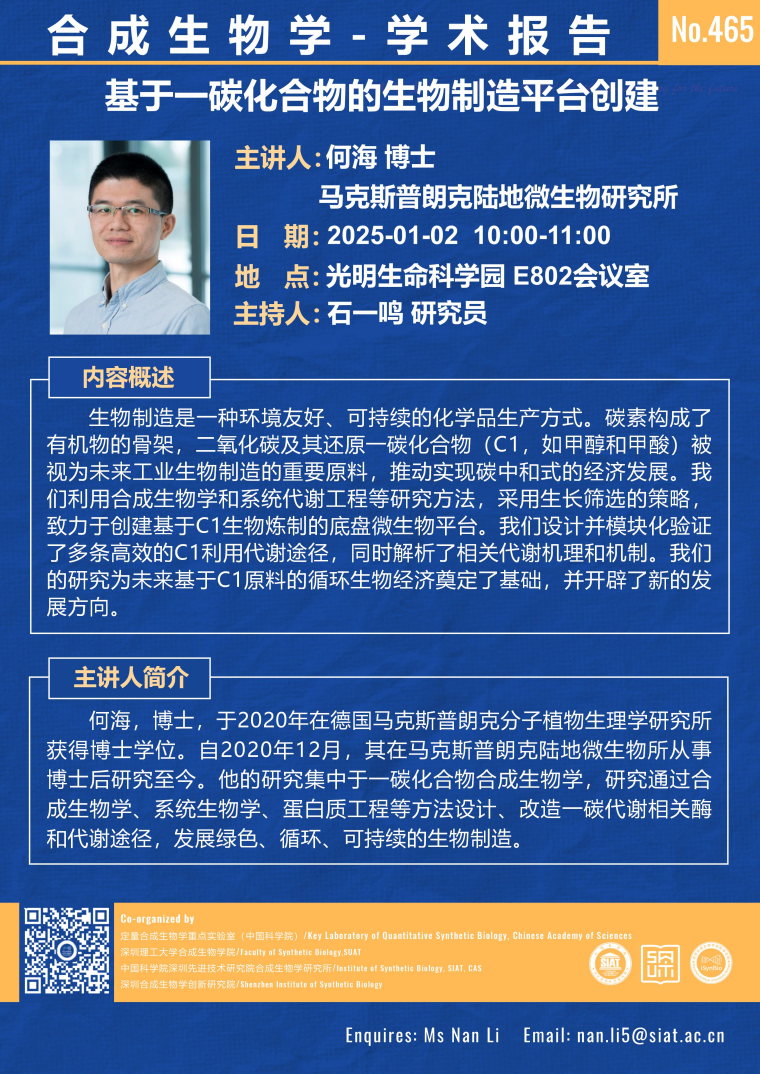 【2025年1月2日 合成所/合成生物学院】基于一碳化合物的生物制造平台创建