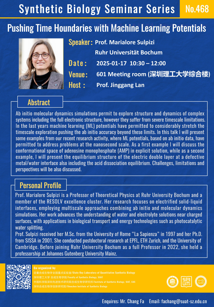 合成所/合成生物学院第468期学术讲座将于 1月17日(星期五)10:30-12:00 在 深圳理工大学综合楼601会议室 举行。
