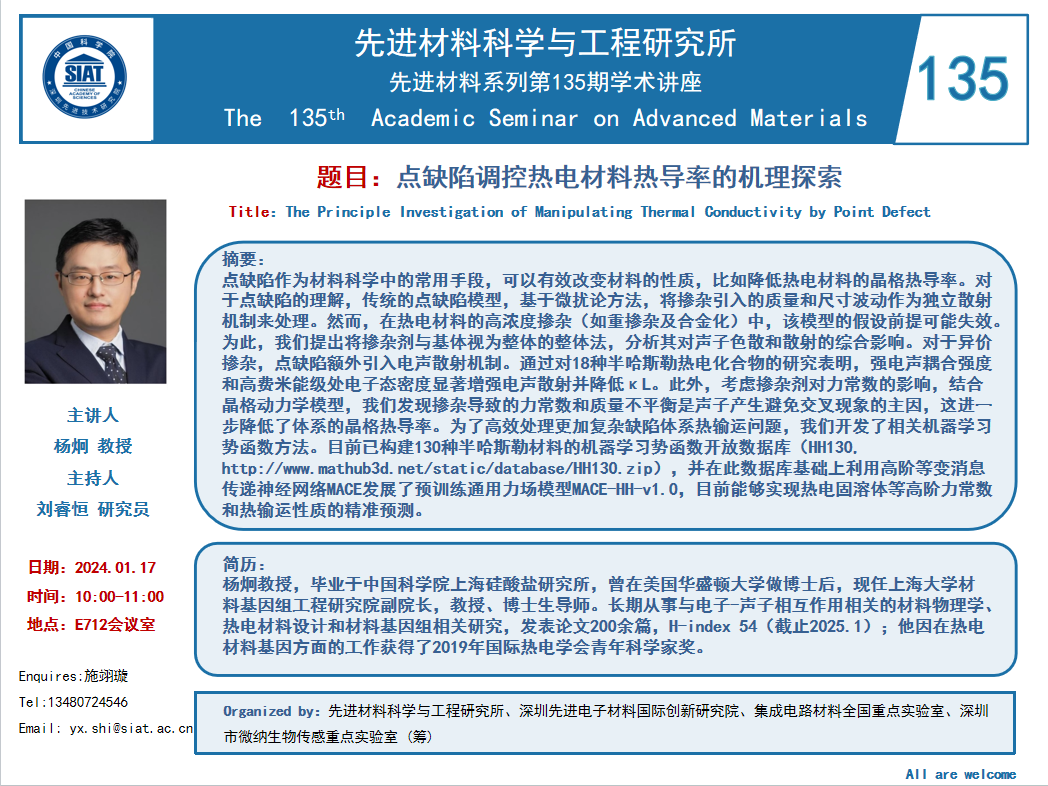 【2025年1月17日 先进材料科学与工程研究所】点缺陷调控热电材料热导率的机理探索