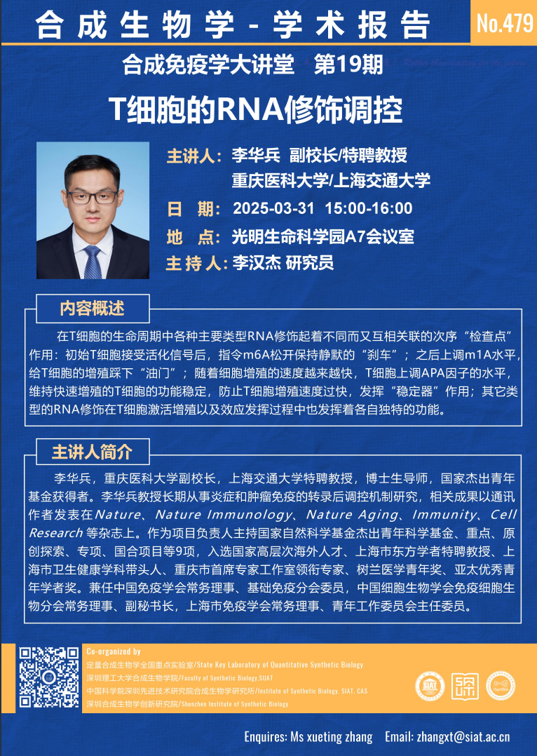 本次讲座邀请了 李华兵 副校长 带来题为“T细胞的RNA修饰调控”的报告。