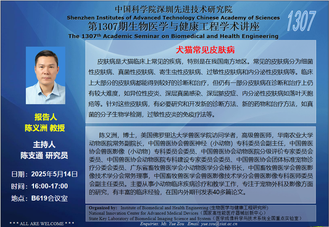 本次讲座邀请了华南农业大学动物医院 陈义洲 教授带来题为“犬猫常见皮肤病”的报告。