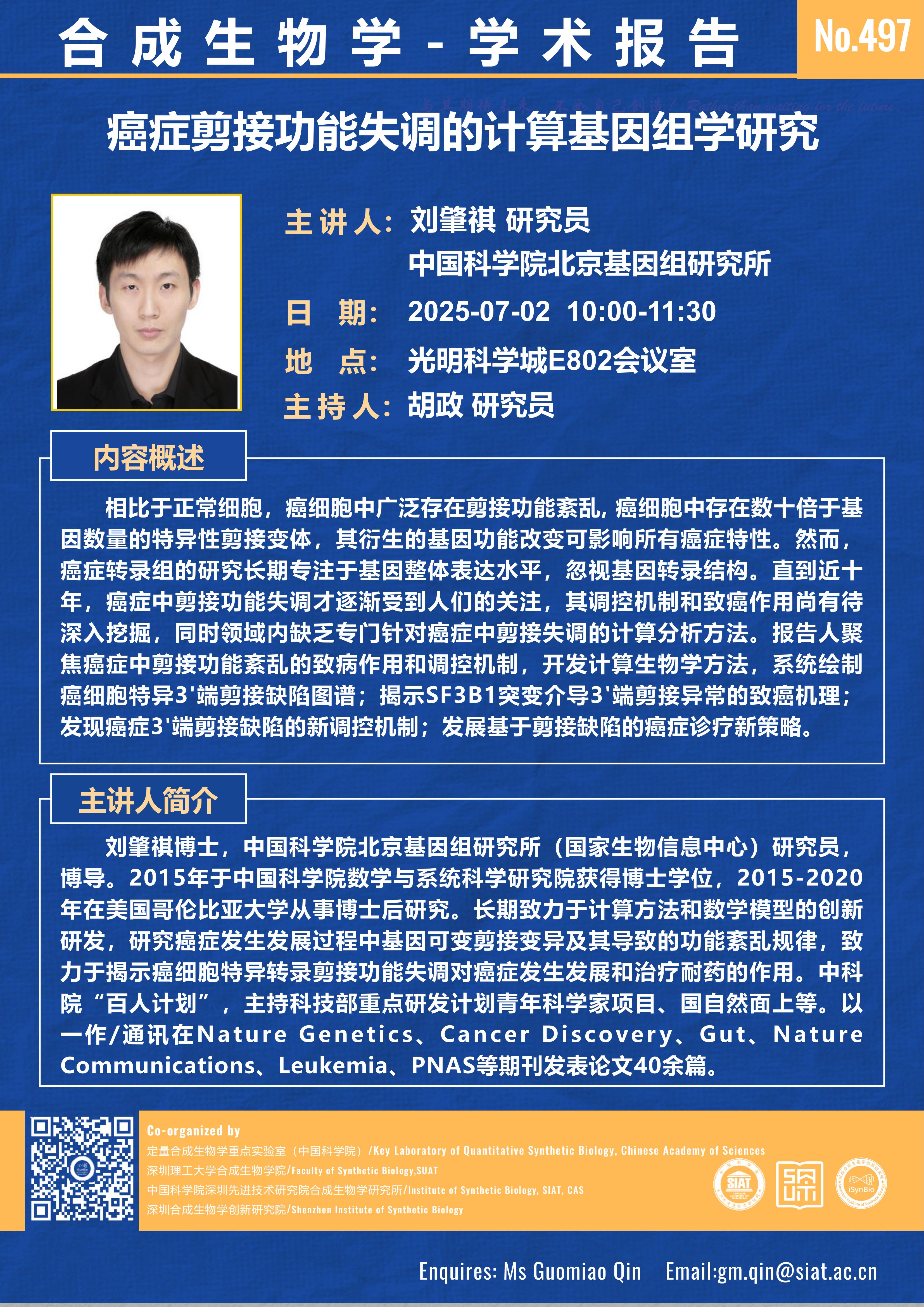 【2025年7月2日 合成所/合成生物学院】癌症剪接功能失调的计算基因组学研究