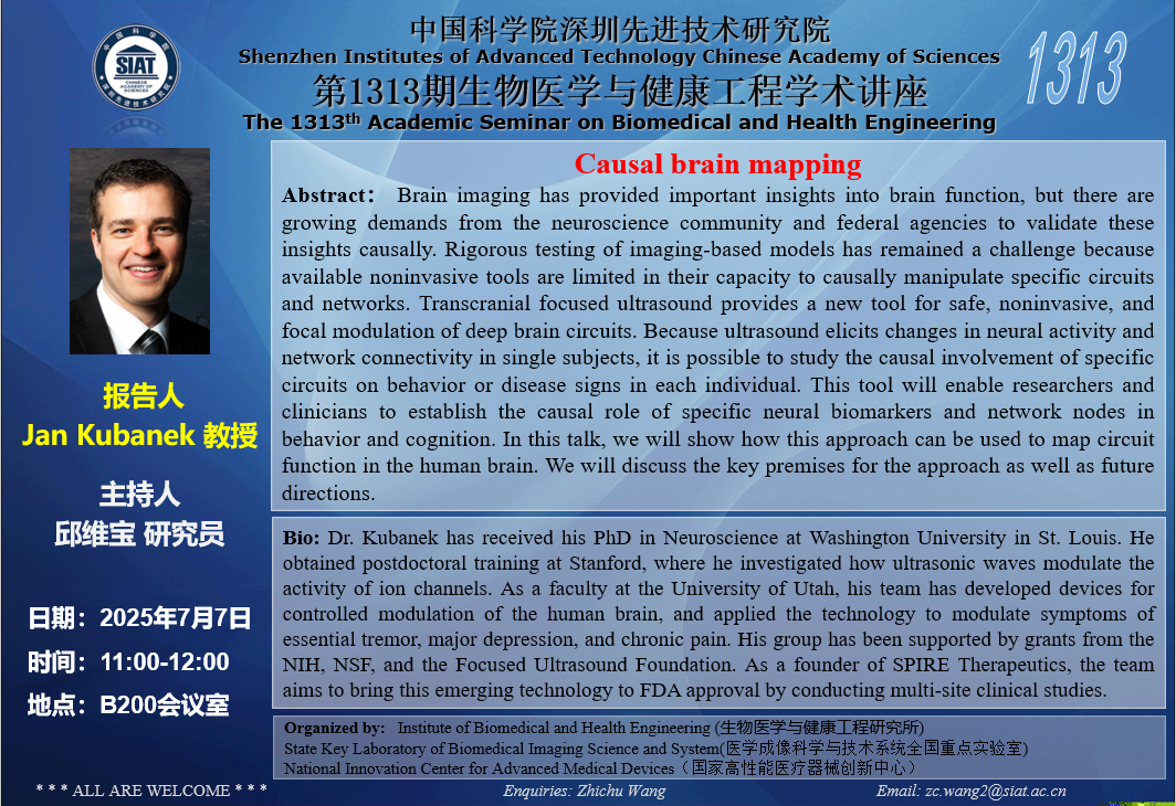 本次讲座邀请了美国犹他大学 Jan Kubanek 教授带来题为“Causal brain mapping”的报告。