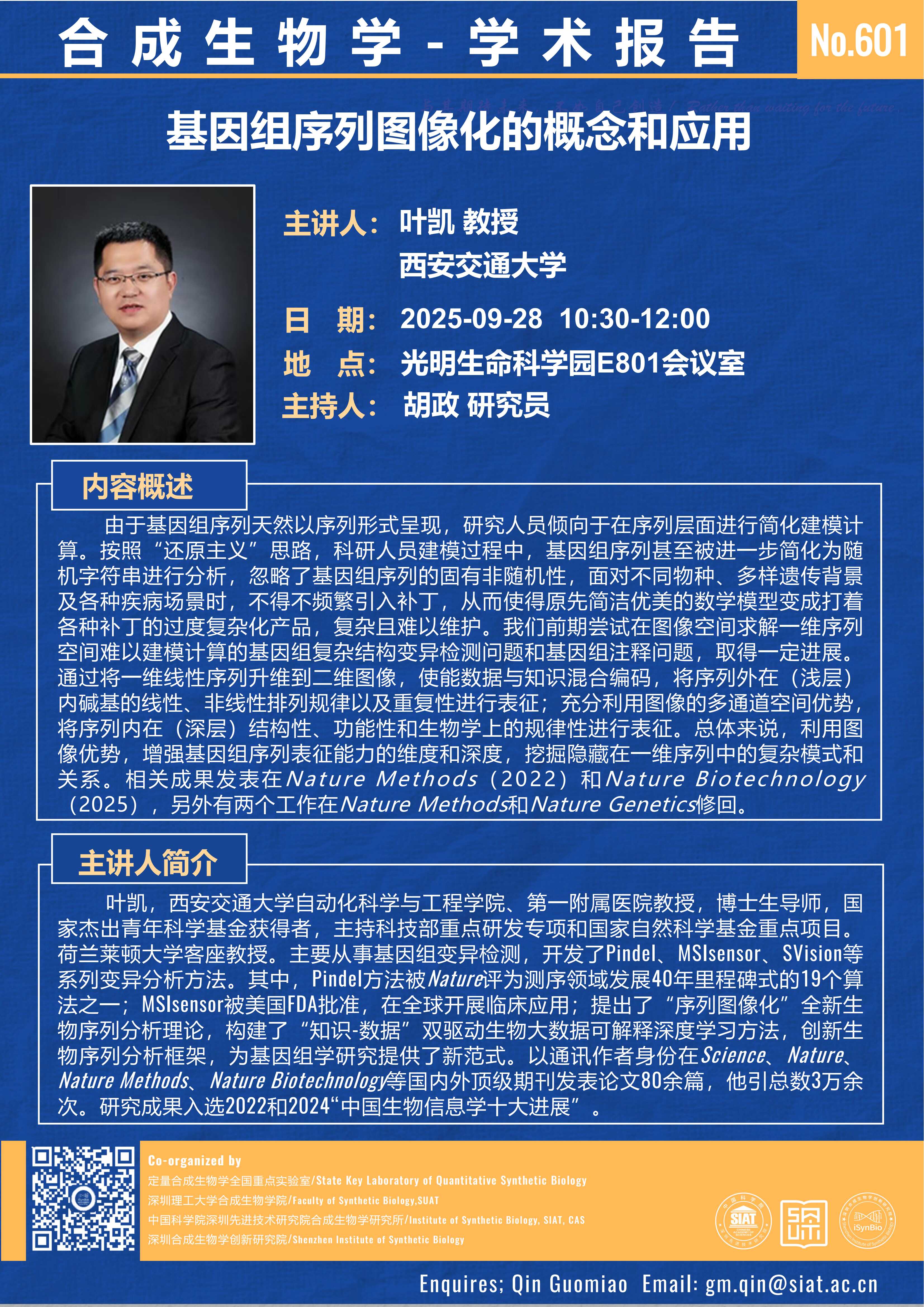 合成所/合成生物学院 第601期 学术讲座将于 9月28日(星期日)10:30-12:00 在 生命科学园E801会议室 举行。