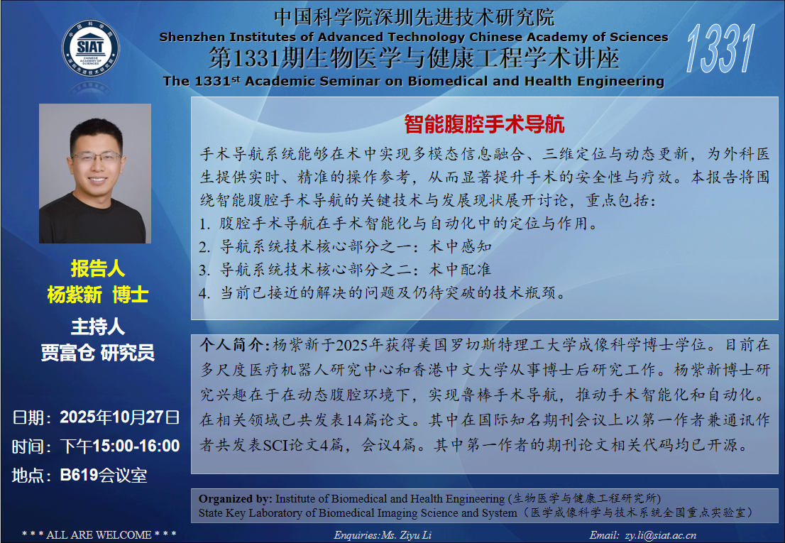 本次讲座邀请了杨紫新 博士带来题为智能腹腔手术导航的报告