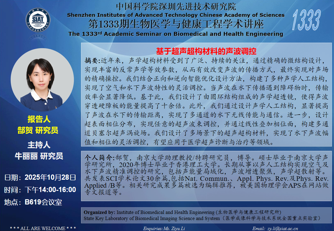 【2025年10月28日 医工所】基于超声超构材料的声波调控