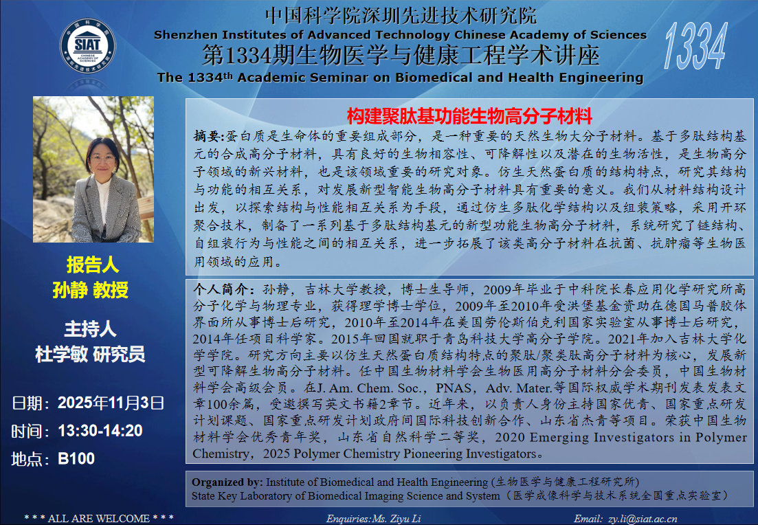 医工所第1334期学术讲座将于 2025年11月3日(周一) 13:30-14:20 在B100会议室举行。