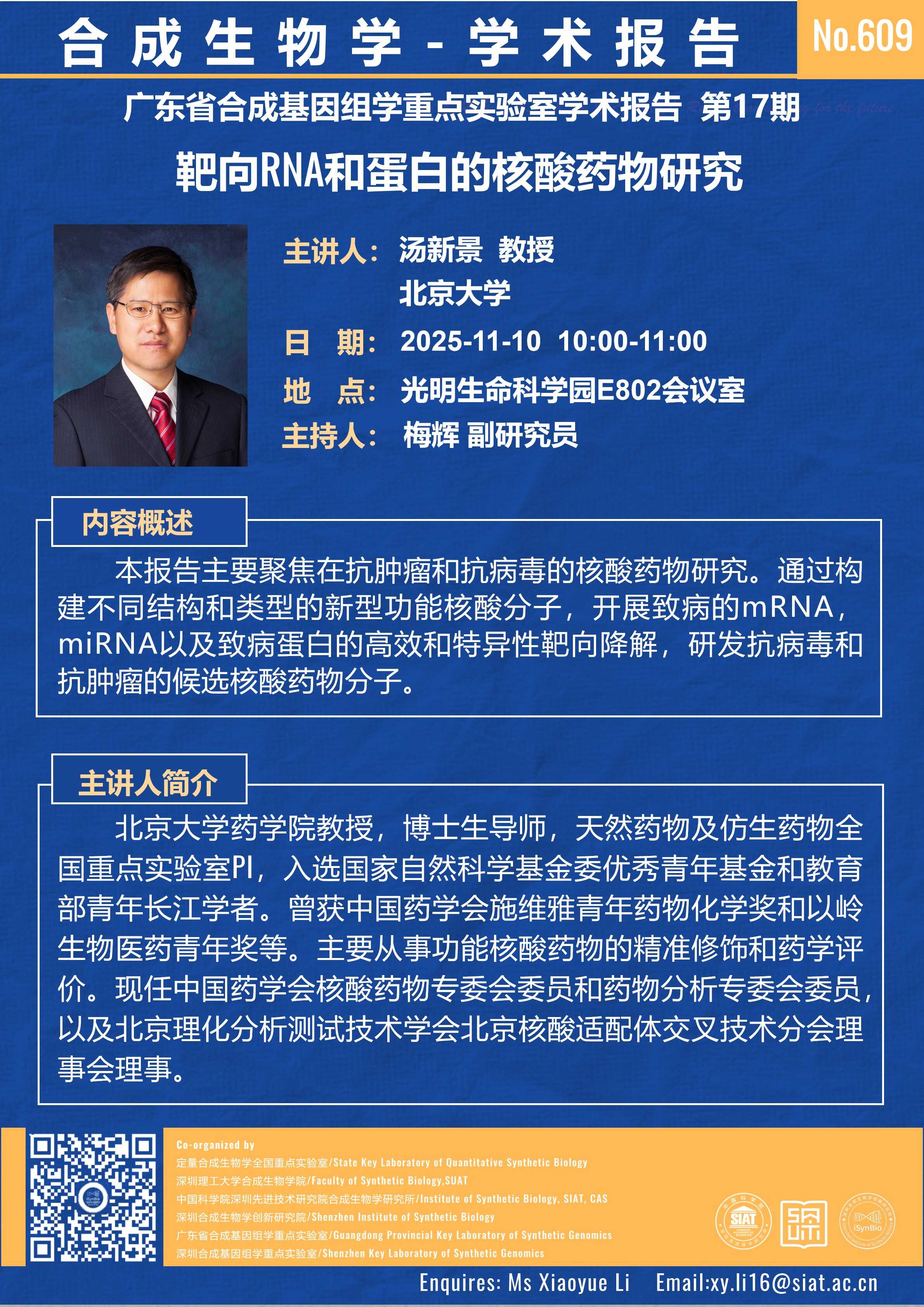 【2025年11月10日  合成所/合成生物学院】靶向RNA和蛋白的核酸药物研究