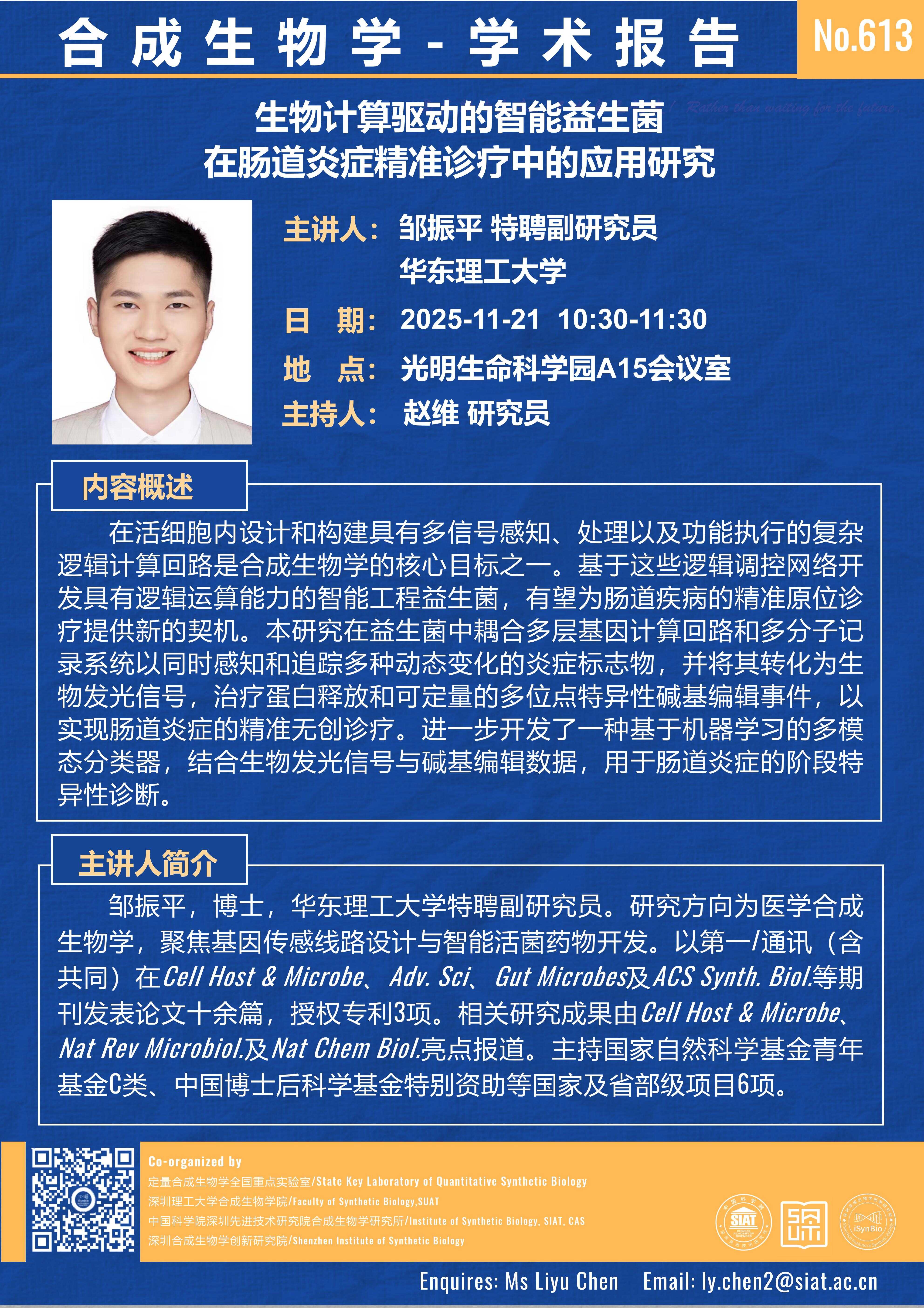 【2025年11月21日 合成所/合成生物学院】生物计算驱动的智能益生菌在肠道炎症精准诊疗中的应用研究