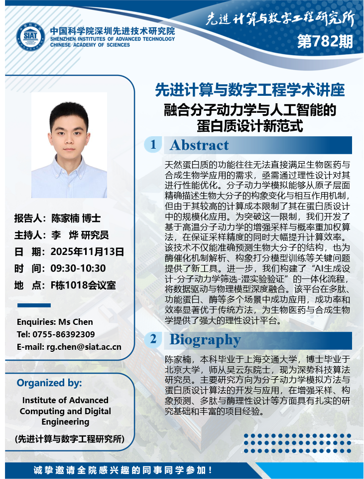 【2025年11月13日 数字所/计算机学院】融合分子动力学与人工智能的蛋白质设计新范式