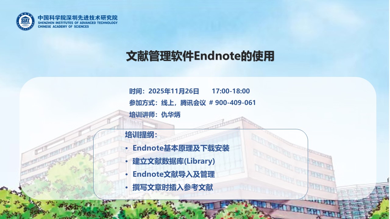 本次培训将系统讲解EndNote的基本原理、文献库建立、文献导入与管理方法,以及如何在论文写作中快速插入并规范格式化参考文献,帮助大家轻松应对文献整理与论文投稿中的常见难题。欢迎广大师生踊跃参与,熟练掌握EndNote这一科研利器,让文献管理变得井井有条,助力科研写作事半功倍!