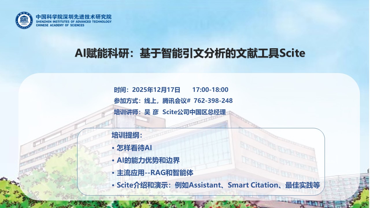 培训讲座:AI赋能科研:基于智能引文分析的文献工具Scite