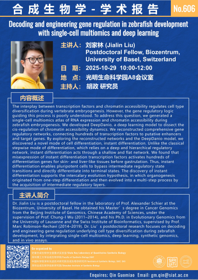 【2025年10月29日 合成所/合成生物学院】Decoding and engineering gene regulation in zebrafish development with single-cell multiomics and deep learning