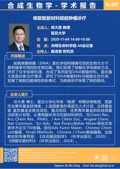 【2025年11月4日 合成所/合成生物学院】核酸智能材料赋能肿瘤诊疗